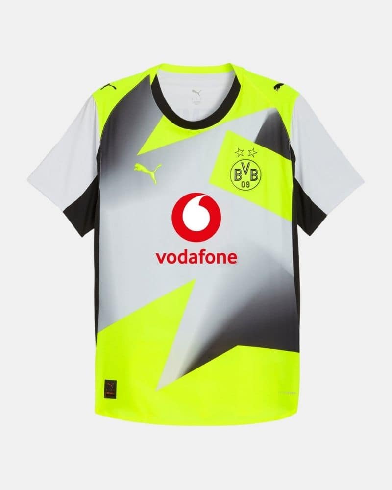 القميص الاحتياطي لبوروسيا دورتموند لموسم 2025/26 يتميز بمزيج ألوان جريء وتصميم حاد مع تأثير انتقال مذهل. القميص يعكس إحساساً بالقوة والحدة والديناميكية – يتناسب مع الطابع القتالي للفريق والجماهير.