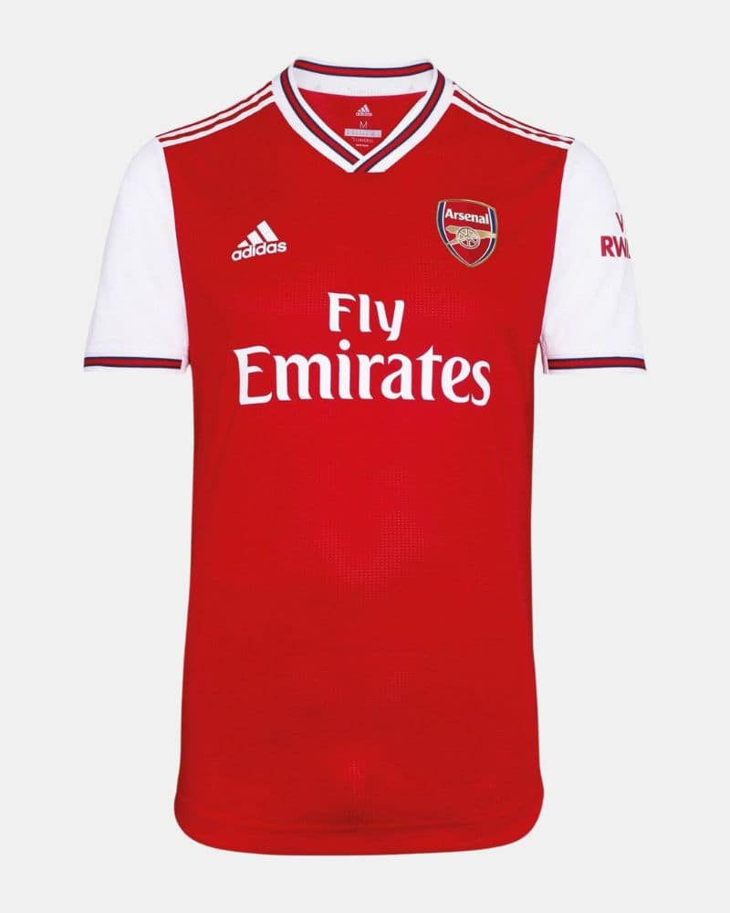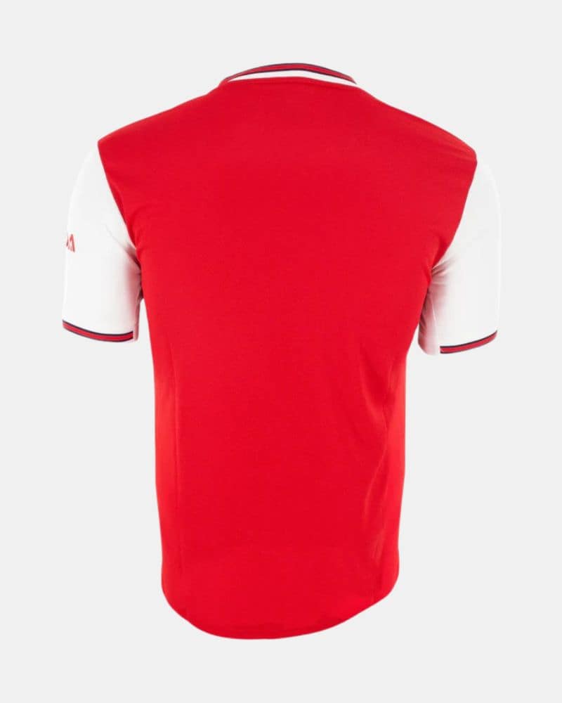חולצת הבית של ארסנל לעונת 2019/20 משלבת את הגוף האדום המסורתי עם שרוולים לבנים, כפי שמזוהה עם המועדון. עיטורי נייבי מופיעים על הצווארון ובקצוות השרוולים.