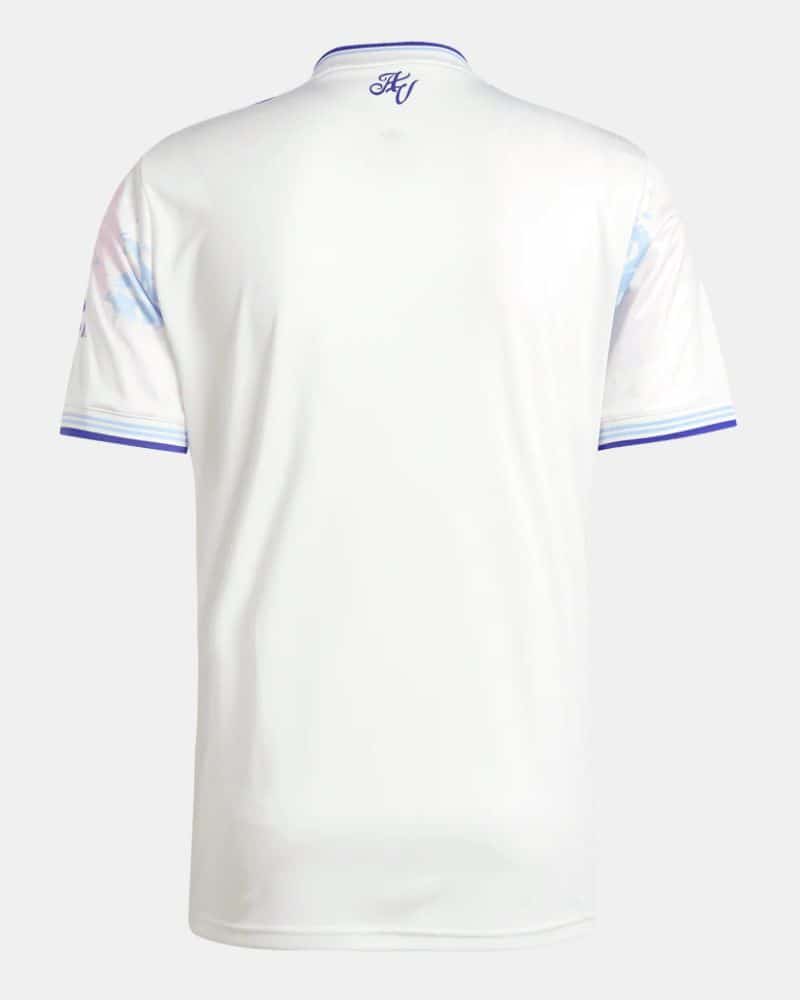 החולצה השלישית של אסטון וילה לעונת 2025/26 מציגה גישה רעננה, אמנותית ונועזת יותר בהשוואה לשתי החולצות האחרות של העונה. החולצה מגיעה עם בסיס לבן ודוגמת שיש אמנותית בגווני לילך, ורוד ותכלת – שילוב ייחודי שמביא לידי ביטוי אלגנטיות וחדשנות עיצובית.