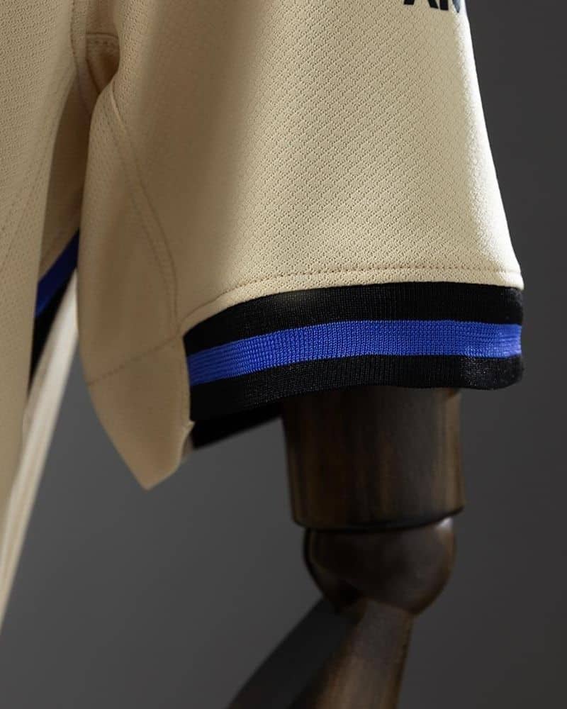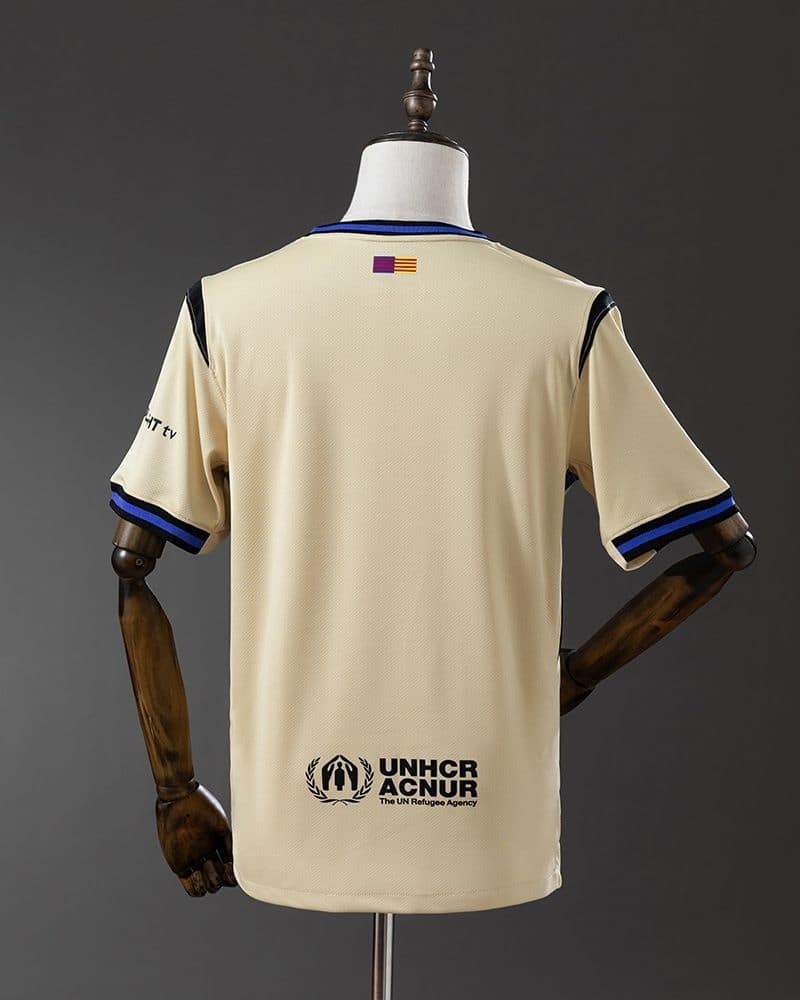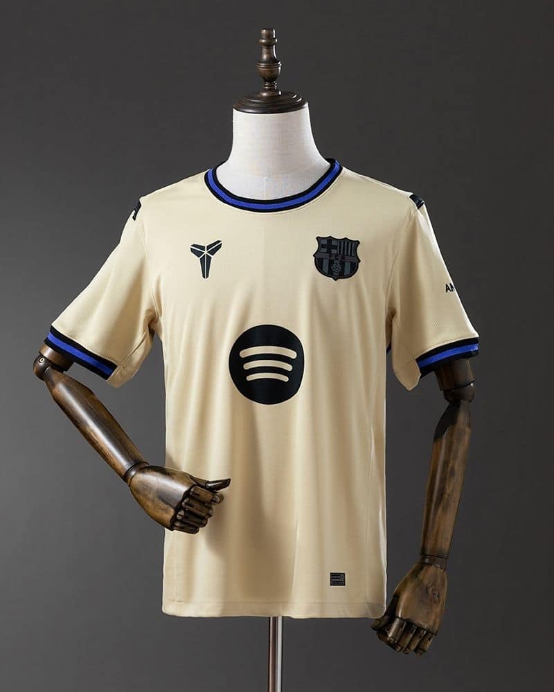 חולצת החוץ של ברצלונה לעונת 2025/26 , מדגם Mamba, מגיעה בגוון עיקרי של זהב-צהבהב בהיר, עם נגיעות עיצוב בצבעים שחור וסגול. שילוב הצבעים מעניק לחולצה מראה ייחודי, דרמטי ומכובד, תוך קריצה לאסתטיקה של קובי בראיינט, שהכינוי שלו "ממבה" (Mamba) נתן השראה לשם הדגם.