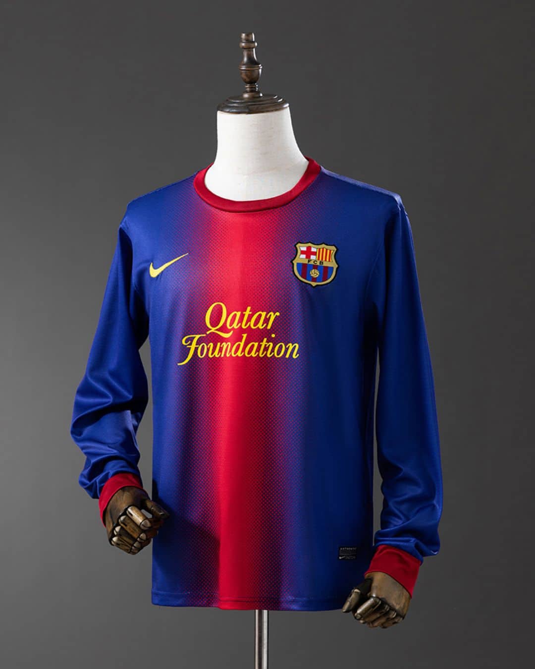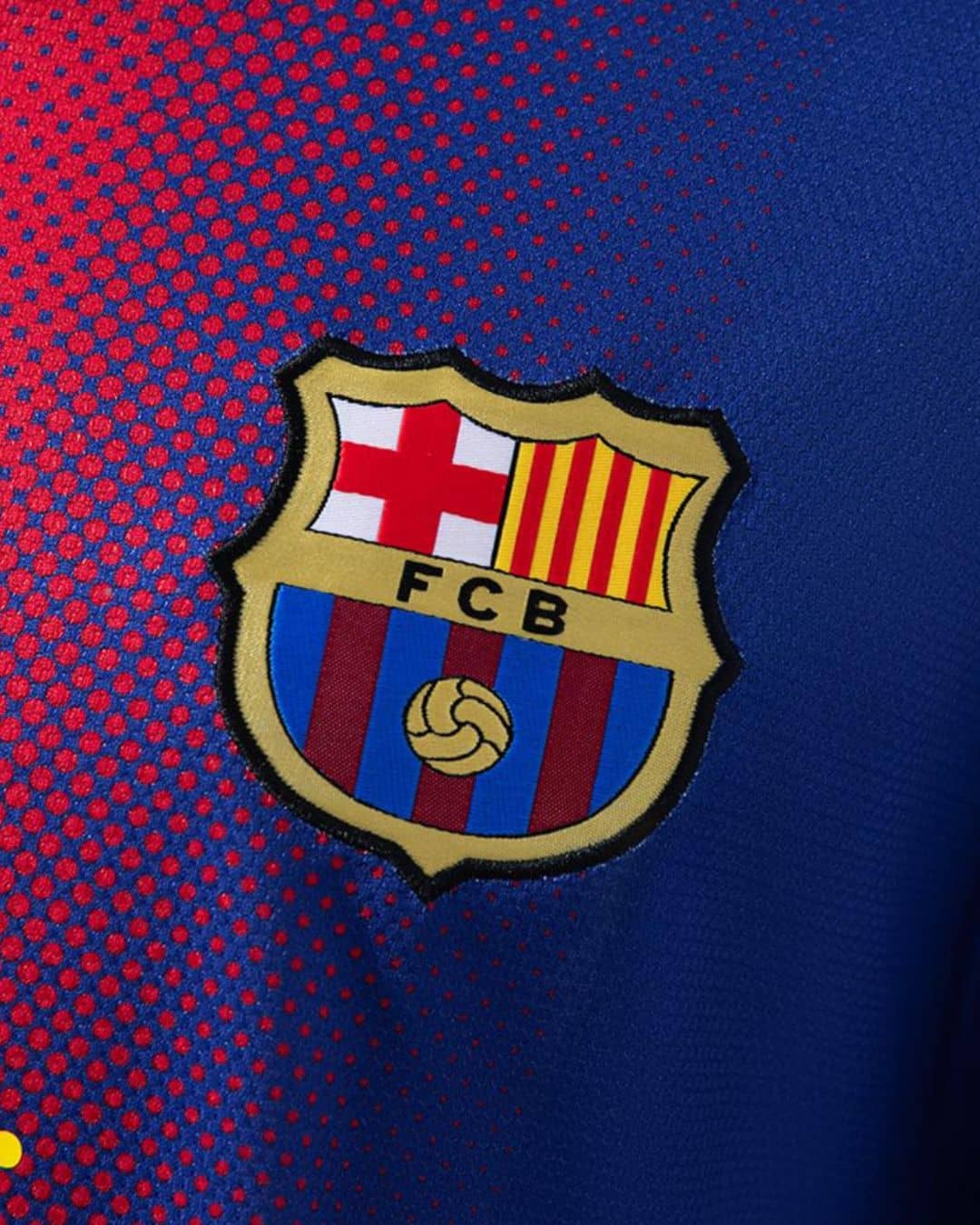 חולצת הבית של ברצלונה לעונת 2012/13 מציגה מראה שונה מהרגיל, עם מעבר צבעים מדורג בין הכחול לאדום, בניגוד לפסים הברורים והקלאסיים שמאפיינים בדרך כלל את המועדון.