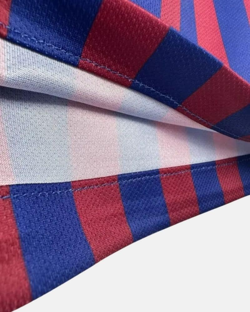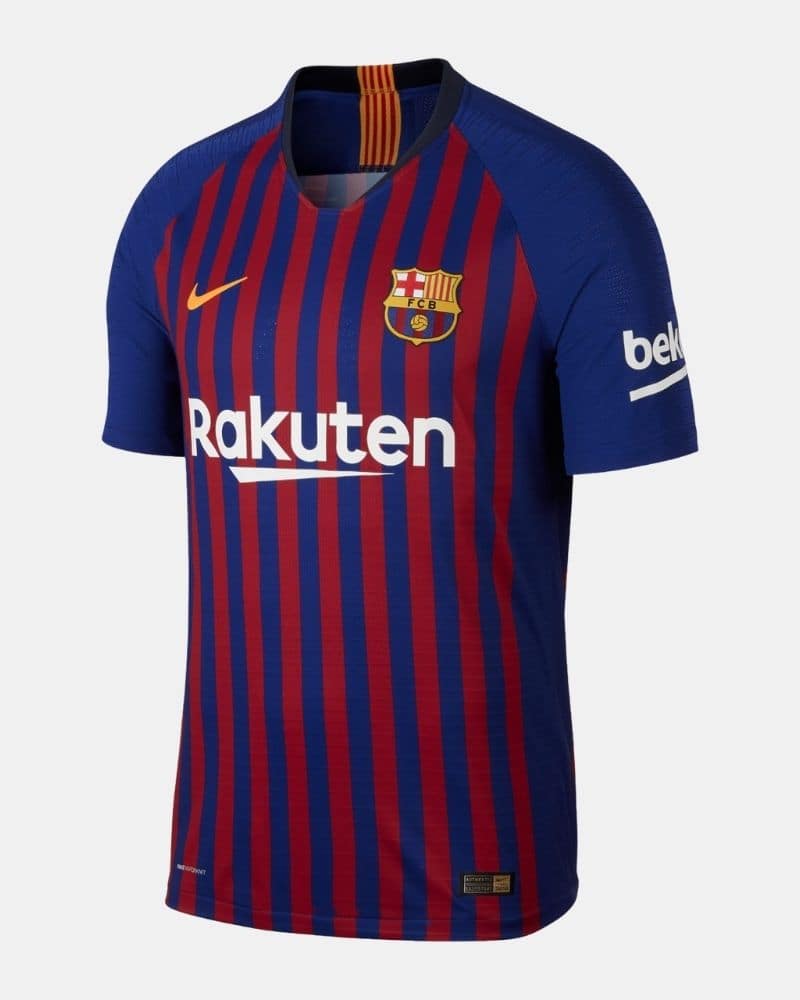 חולצת הבית של ברצלונה לעונת 2018/19 מציגה מראה חדש עם פסים דקים בצבעי כחול ואדום. למעשה, ישנם בדיוק 10 פסים אדומים על רקע כחול – כל אחד מהם מייצג אחד מעשרת הרבעים של ברצלונה: לס קורטס, סנטס-מונז'ואיק, סרייה-סנט ג'רבאזי, לה ברצלונטה, סנט מרטי, סיוטט וייה, גרסיה, הורטה-גינארדו, נאו באריס וסנט אנדראו.