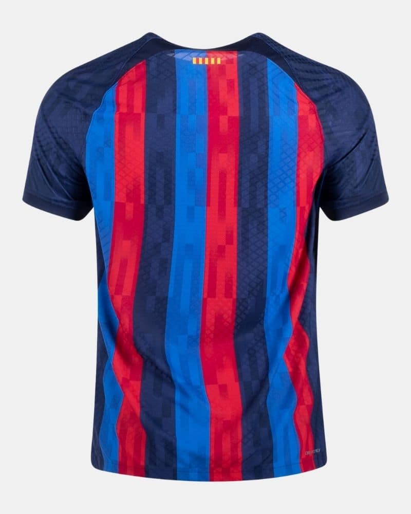 חולצת הבית של ברצלונה לעונת 2022/23 מציגה מראה אלגנטי, עם תוספת של כחול כהה לפסים הקלאסיים של הבלוגראנה. השרוולים והצווארון מגיעים בגוון נייבי אחיד, בעוד חלקה הקדמי של החולצה כולל פסים רחבים יחסית בצבעי נייבי, כחול רויאל ואדום. שמו הרשמי של הכחול הכהה בעיצוב הוא "Obsidian" – אותו צבע שמשמש גם ללוגואים בחולצת החוץ הזהובה של העונה.