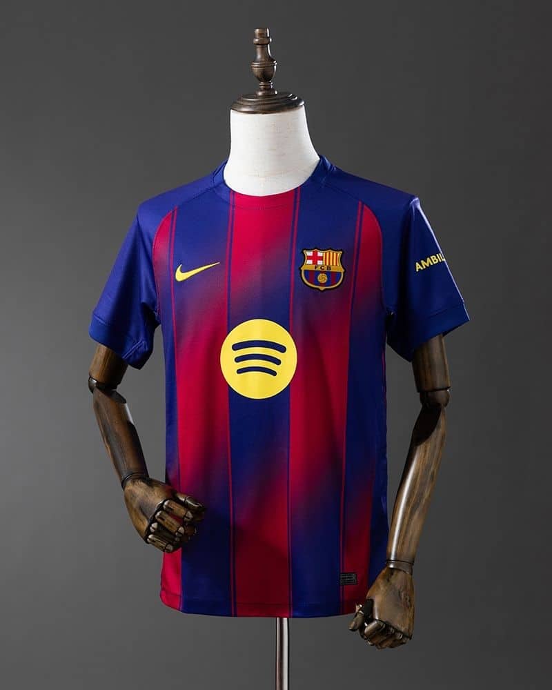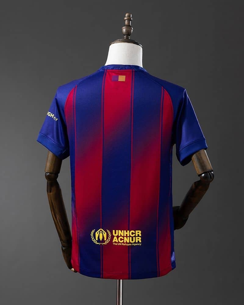 חולצת הבית של ברצלונה לעונת 2025/26 מציגה עיצוב ייחודי עם הפסים האנכיים הקלאסיים בצבעי אדום וכחול כהה. במרכז החולצה יש מעבר הדרגתי בין הפסים אשר יוצר מראה יוצא דופן ומקורי.