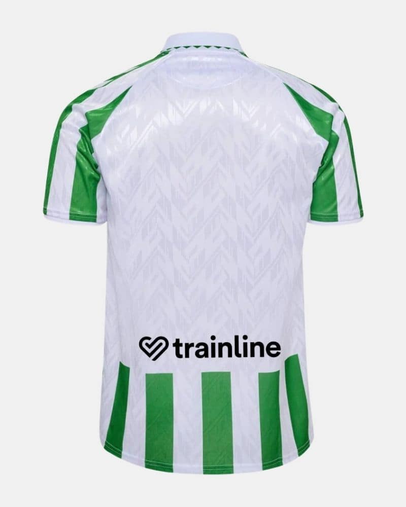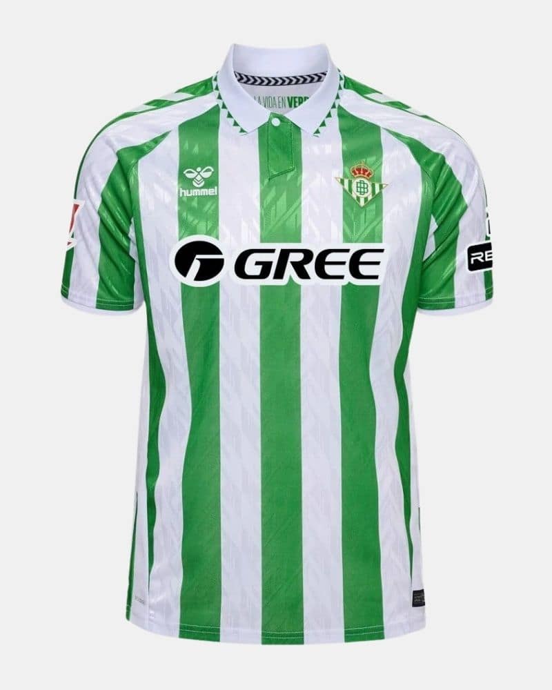 חולצת הבית של ריאל בטיס לעונת 2024/25, מהווה מחווה ברורה לעיצובים האייקוניים של תחילת שנות ה־90 עם נגיעה נוסטלגית ושדרוגים מודרניים. האלמנט הבולט ביותר הוא צווארון פולו קלאסי עם כפתורים, אשר מעניק לחולצה מראה רשמי ונוסטלגי. זהו עיצוב שמתכתב ישירות עם חולצות משנות ה־90, במיוחד עונות כמו 1994/95.