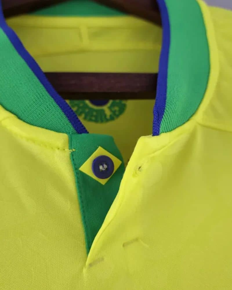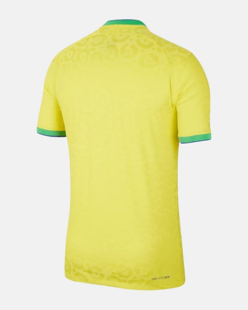 חולצת נבחרת ברזיל למונדיאל 2022 נפרדת מהצהוב הקלאסי ובמקומו מציגה גוון צהוב בוהק בשם הרשמי "Dynamic Yellow". דוגמת נמר עדינה מכסה את החזית, הגב והשרוולים, ומקשרת את העיצוב גם לחולצת החוץ של הנבחרת לטורניר.