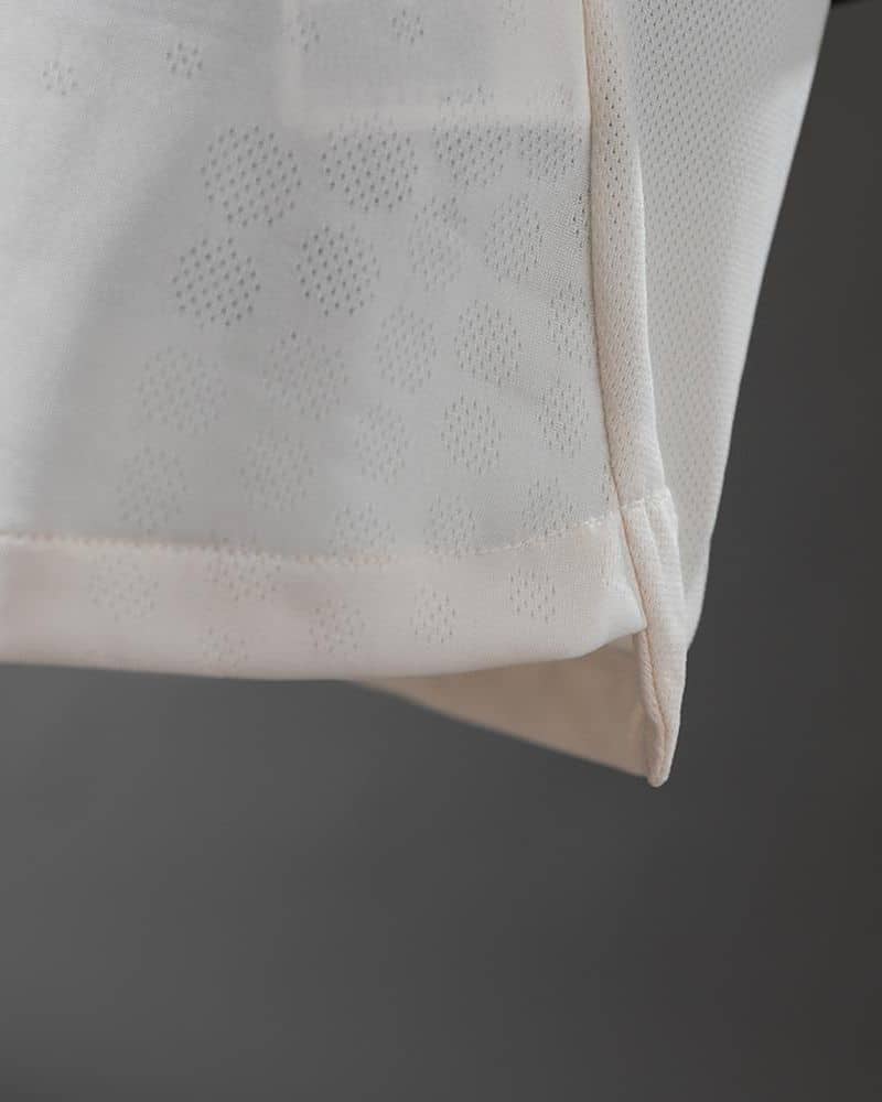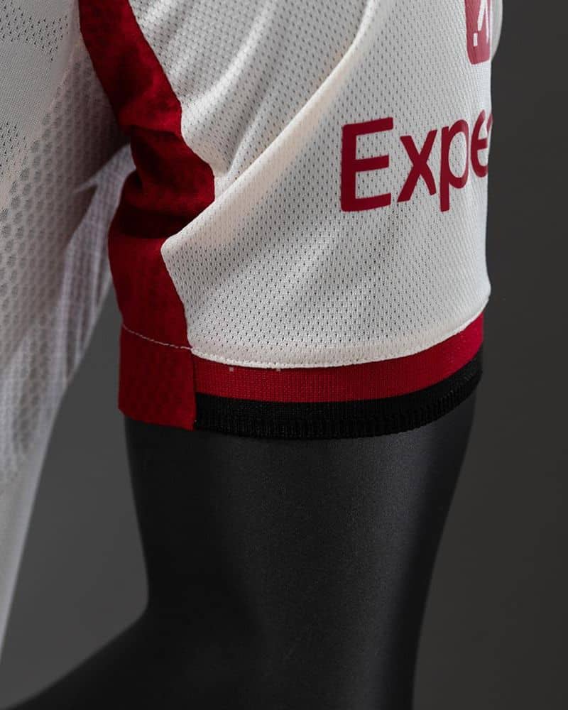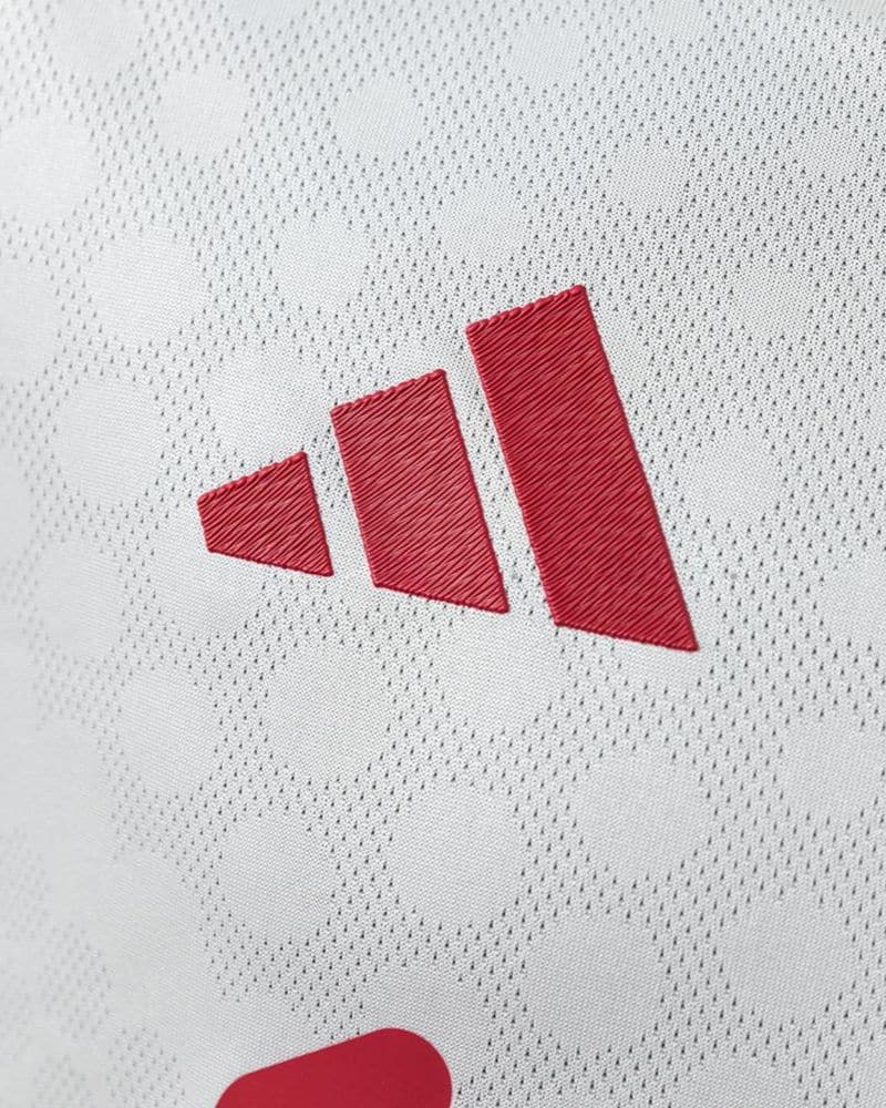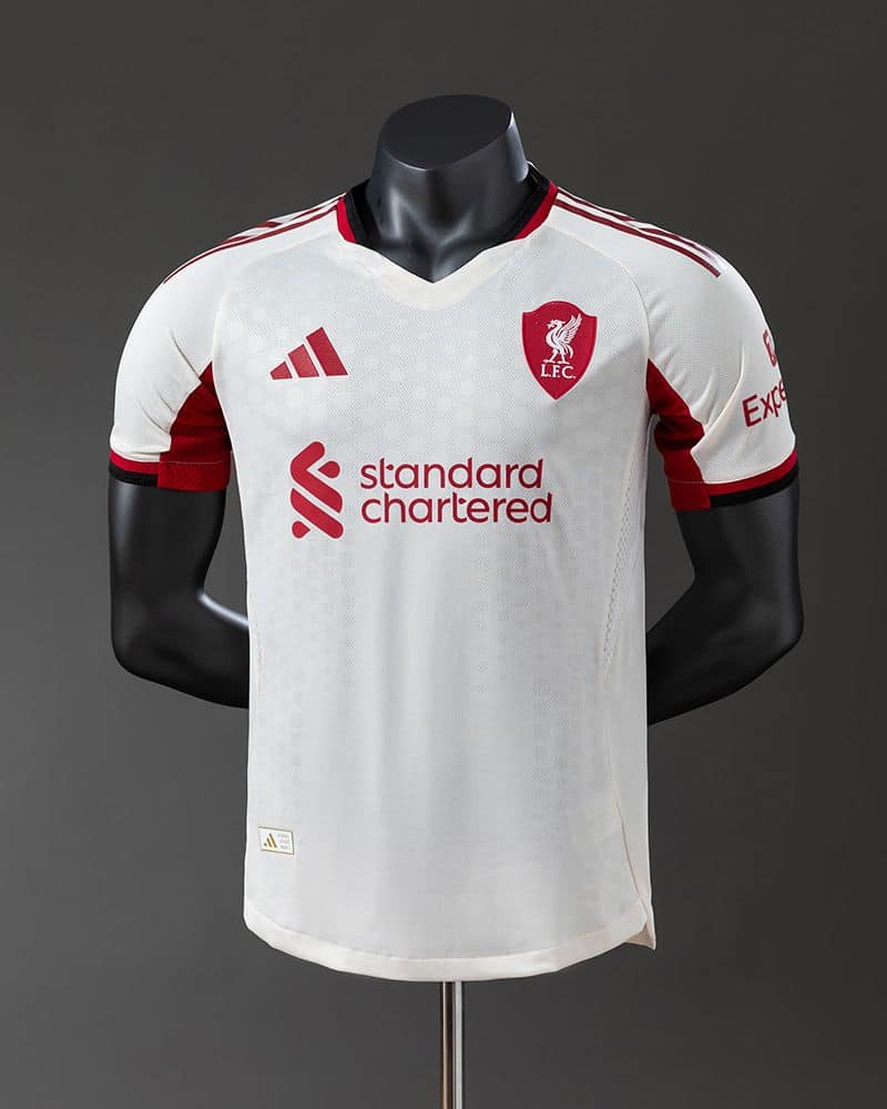 חולצת החוץ של ליברפול לעונת 2025/26 מציגה מראה אלגנטי, מינימליסטי ועם ניחוח וינטג' עדין, באמצעות שילוב צבעים מאופק אך מדויק. החולצה מעוצבת בסגנון סולידי אך עם טאץ’ ייחודי שמבליט את זהות ליברפול. שילוב של לבן לא רגיל, שחור קלאסי ואדום סמלי הוא מחווה למורשת עם מראה עכשווי.