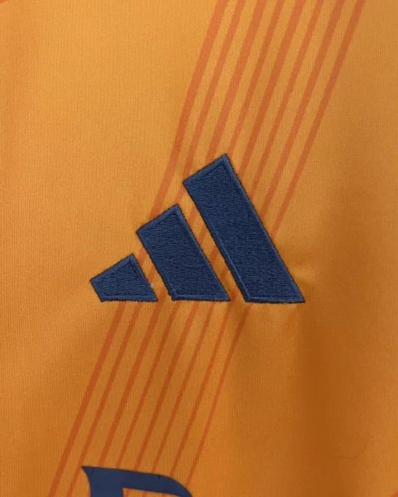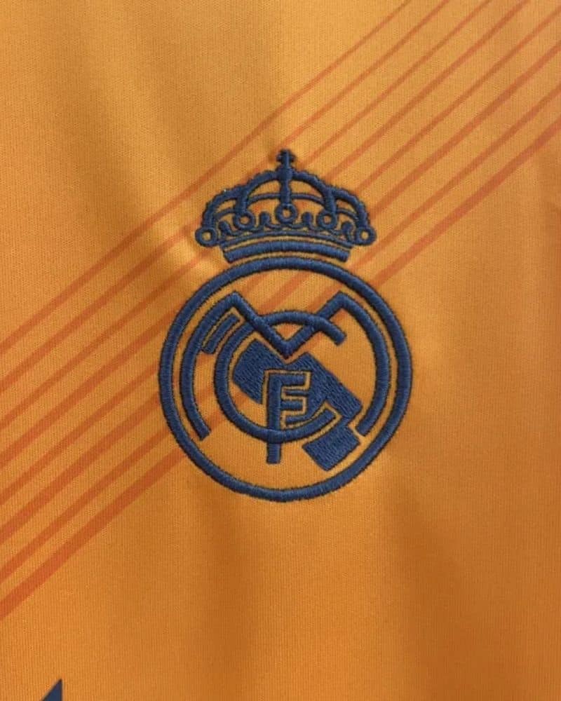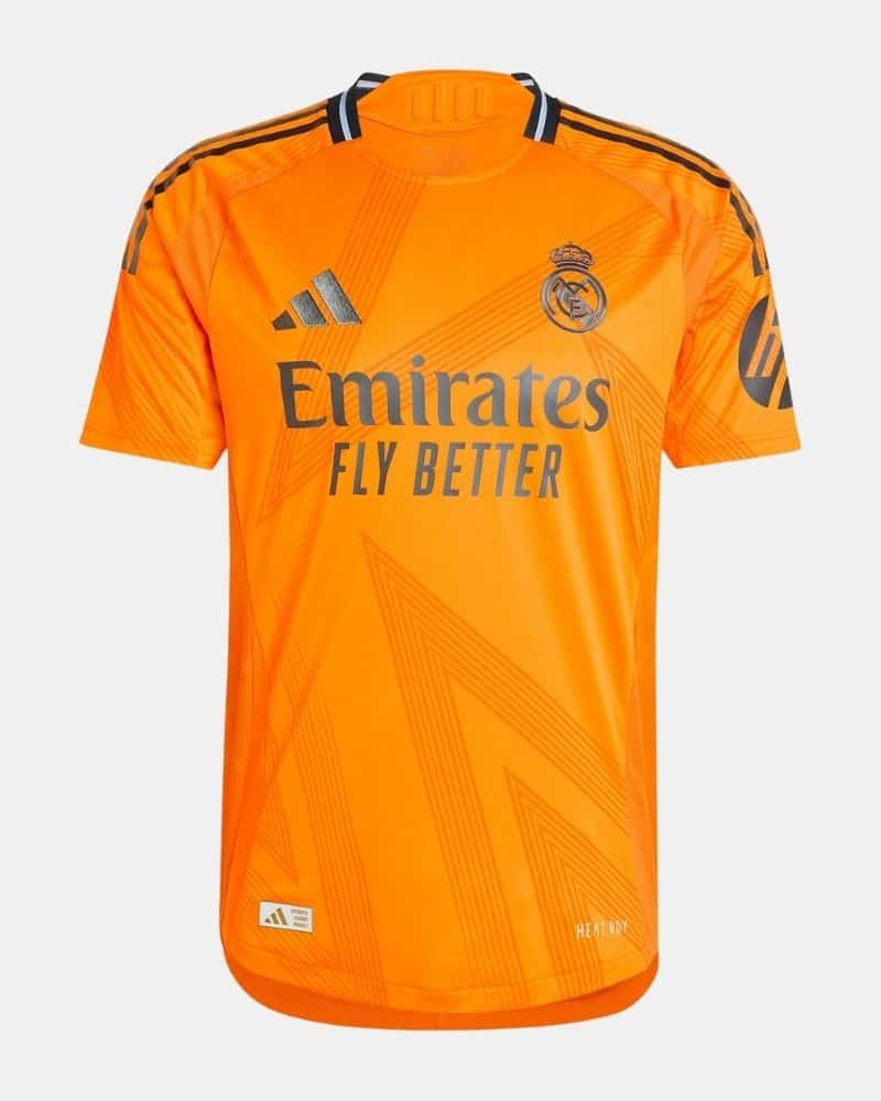 חולצת החוץ החדשה של ריאל מדריד לעונת 2024/25 מזכירה בצבעיה את חולצת הצד השלישית של עונת 2013/14. החולצה מגיעה בצבע כתום בוהק ודומיננטי, עם יישומים ועיטורים בצבע שחור. הצווארון כולל פרטים בלבן, שמוסיפים ניגוד אלגנטי לעיצוב הנועז.