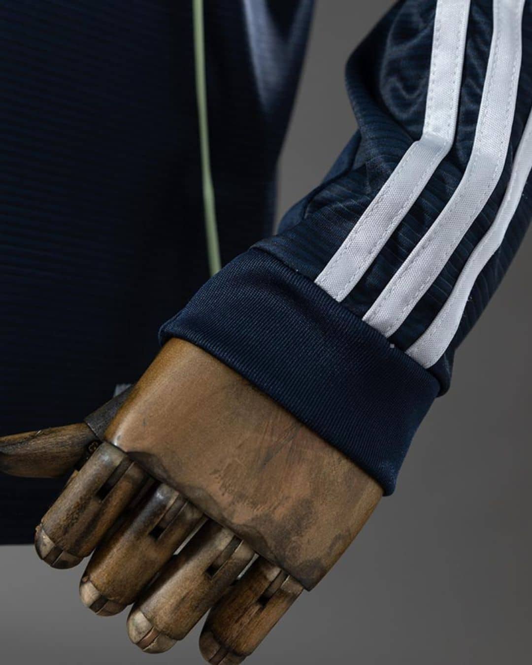 חולצת החוץ של ריאל מדריד לעונת 2025/26 שואבת השראה מהחזית החיצונית של אצטדיון סנטיאגו ברנבאו בלילה. היא מגיעה בצבע כחול נייבי כהה, בשילוב לוגואים בצבע כסף ונגיעות בצבע צהוב בהיר זוהר ("Light Volt"). למרות שמדובר בעיצוב עדין, מופיע על החולצה דפוס קווים המזכיר את המראה הארכיטקטוני של חזית הברנבאו.