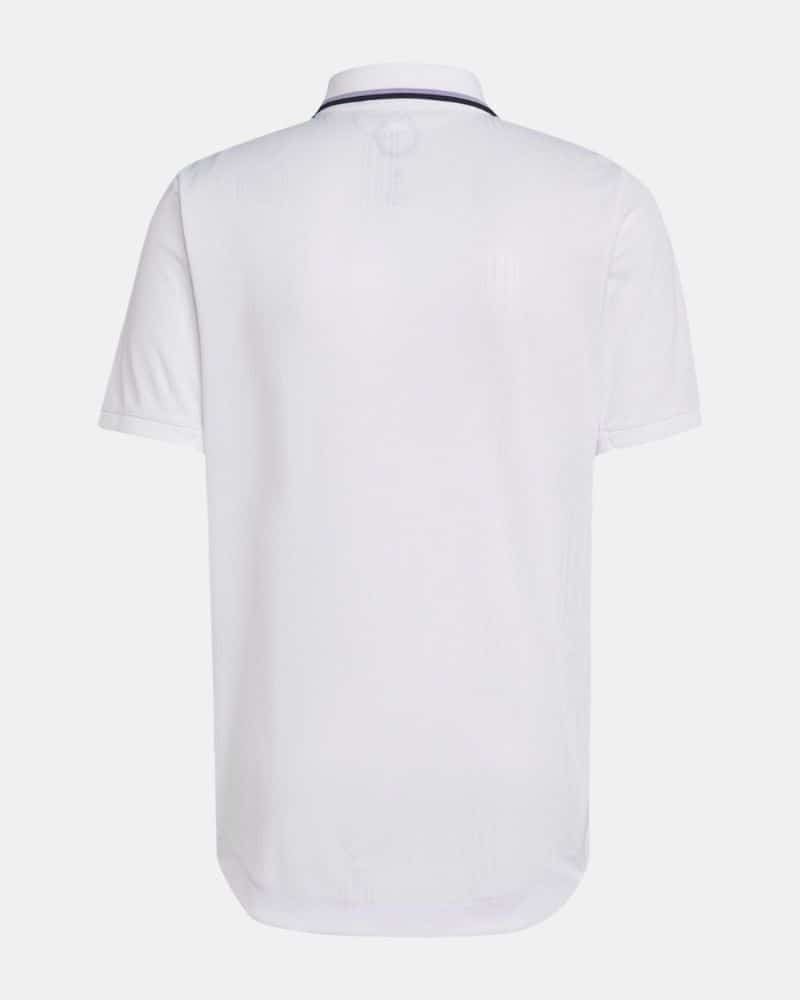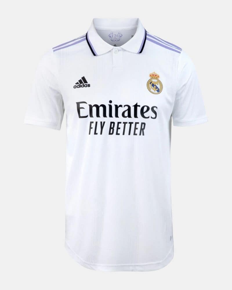 חולצת הבית של ריאל מדריד לעונת 2022/23 משלבת את הצבע הלבן האייקוני של המועדון עם פרטים בצבעים שחור וסגול. העיצוב של החולצה לעונה זו מצליח לשלב בין אלמנטים מסורתיים שמזוהים עם ריאל מדריד – כמו הצבע הלבן והצווארון המכופתר – לבין טאצ'ים מודרניים כמו הגרפיקה הטונאלית והצבע הסגול הלא שגרתי.