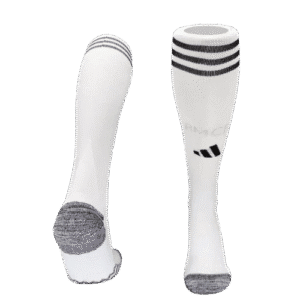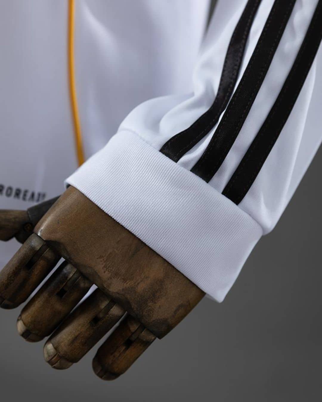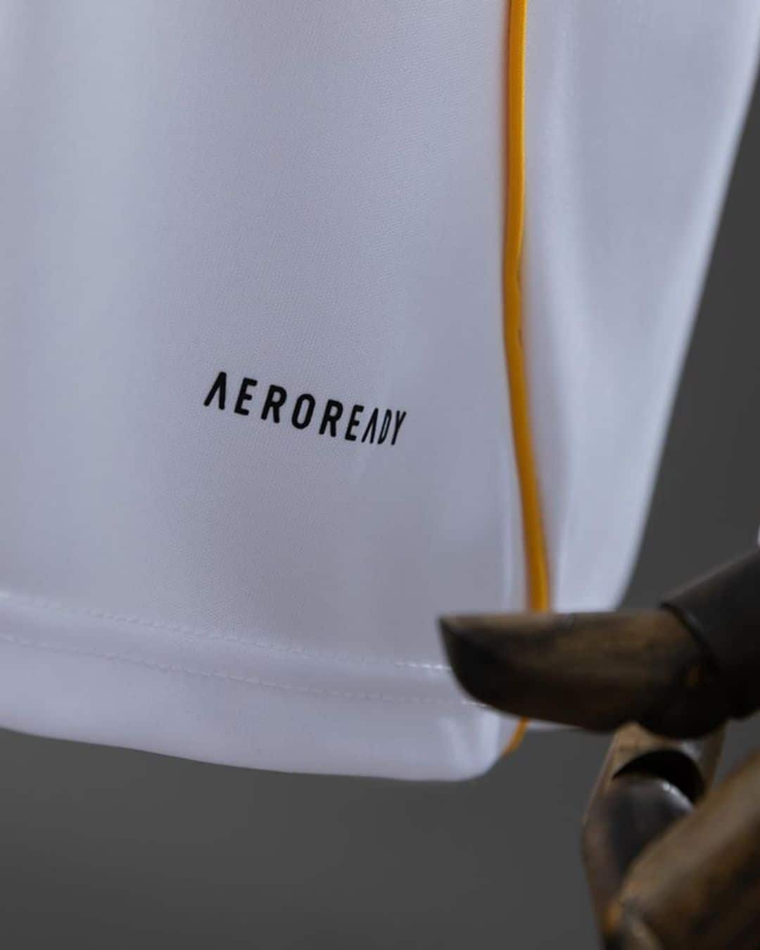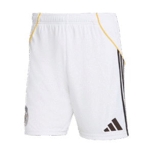 חולצת הבית של ריאל מדריד לעונת 2025/26 נשארת נאמנה למסורת עם צבע לבן קלאסי וזה הדבר ה"משעמם" היחיד בה. החולצה משלבת פרטי עיצוב בצהוב, יישומים באפור בהיר ולוגואים בשחור. קו צהוב עובר לאורך שני צדי החולצה, בעוד שהשרוולים והצווארון כוללים פסים אפורים עדינים. גם הפאנל הצידי שמתחת לבית השחי מעוצב באפור בהיר, מה שמעניק לחולצה מראה מודרני ואלגנטי.